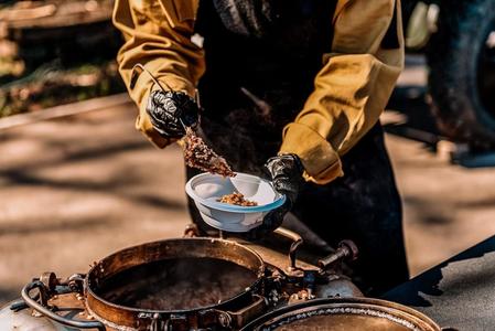 приготовим кашу на месте в казане, есть возможность приготовить кашу в полевой кухне за дополнительную плату. Приготовление каши и раздача в форме военных лет